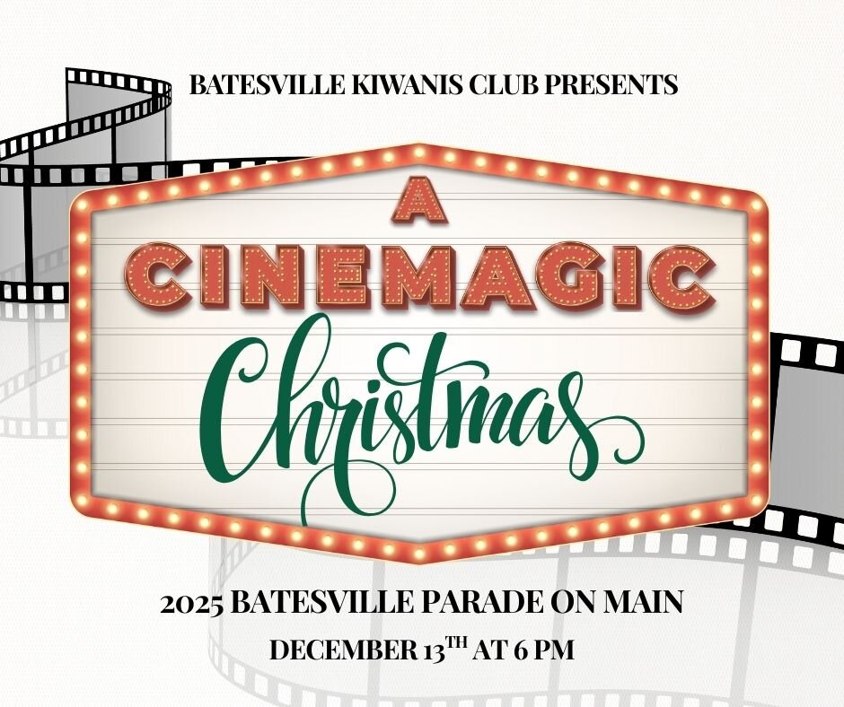 The parade is scheduled for Saturday, December 13, 2025, at 6 p.m. on Main Street. The 2025 parade route begins near the intersection of 12th and Main and ends at Marshall Dry Goods. Learn more at facebook.com/BatesvilleKiwanisParade.